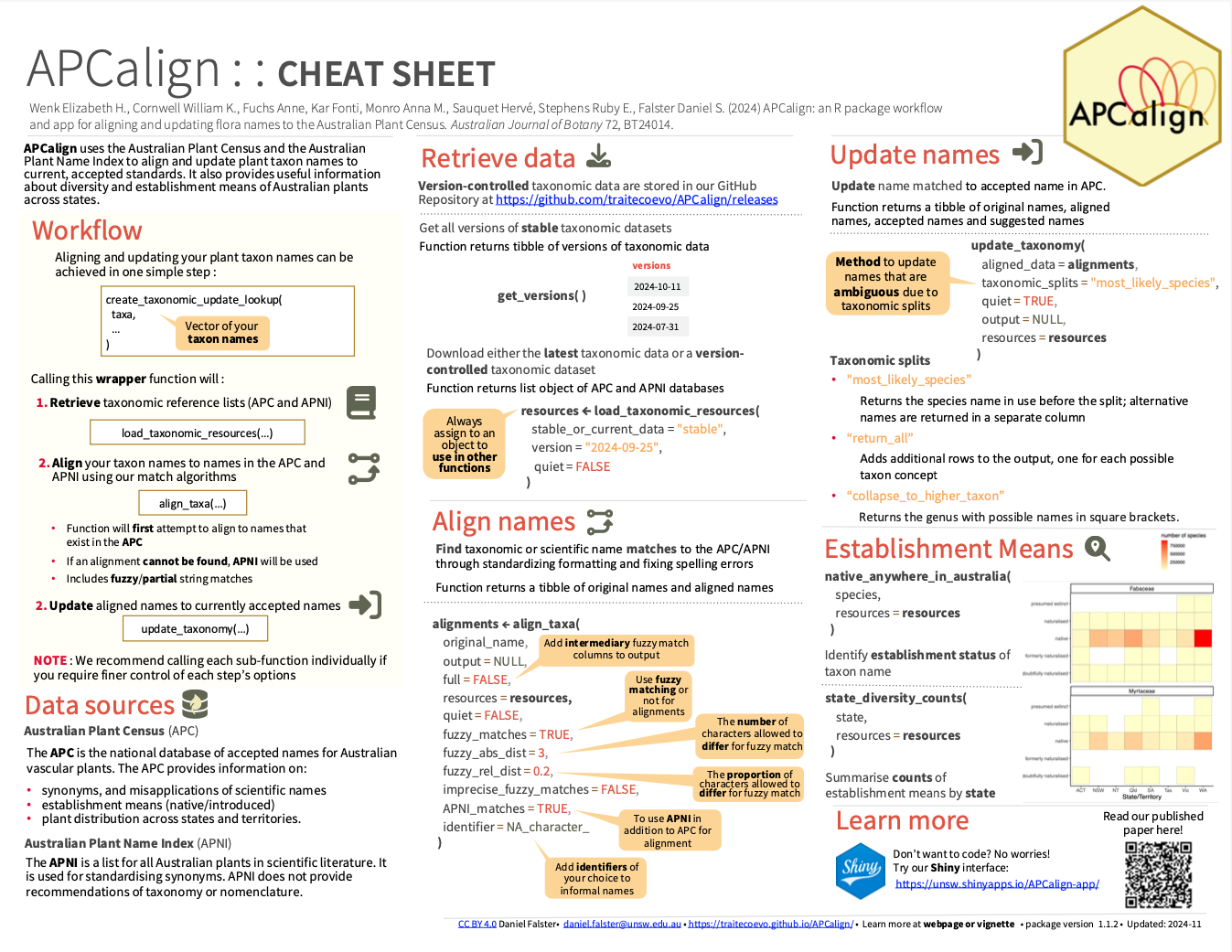 remotes::install_github("traitecoevo/APCalign")Or for the ShinyApp head to unsw.shinyapps.io/APCalign-app