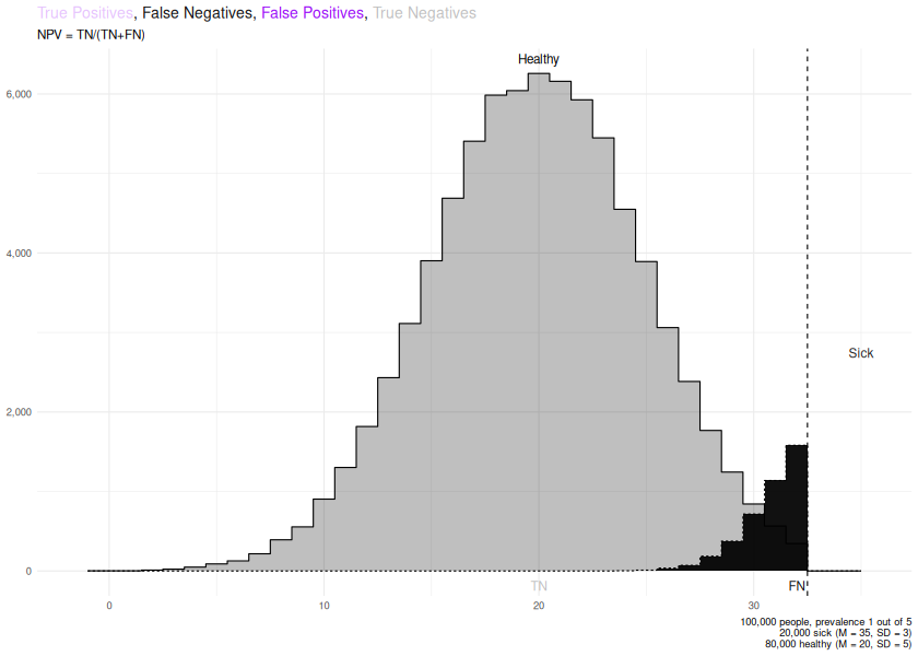 The area plot overlay can show more details about how the calculation of PPV/NPV is performed: