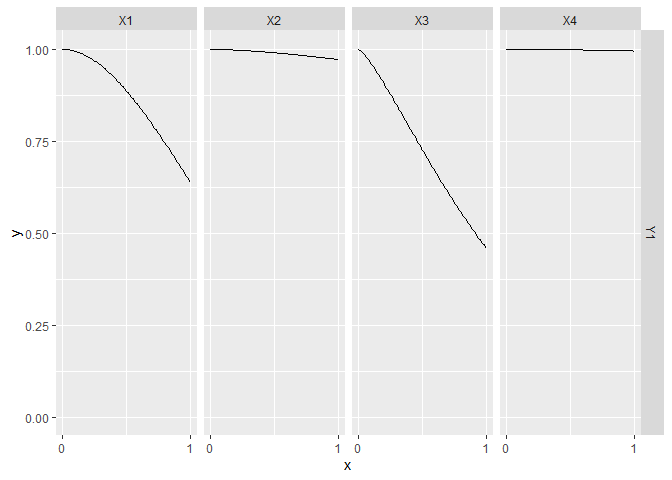 This plot is the best for giving an idea of what the higher dimension function look like. You can see how the output changes as each input is varied.