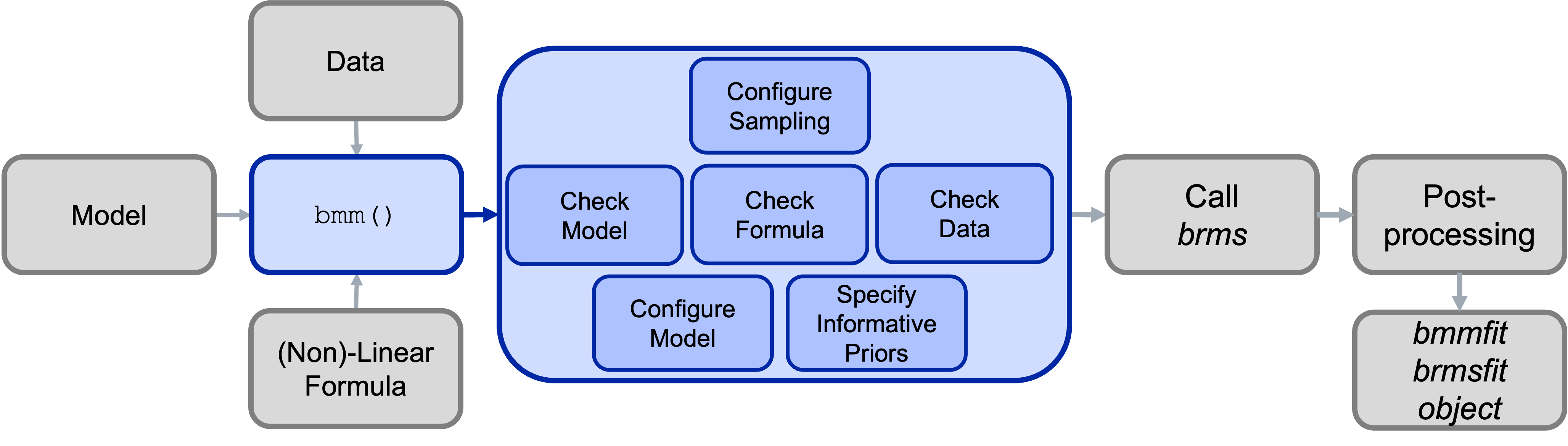 Under the hood, the main bmm() function will then call the appropriate functions for the specified model and will perform several steps: