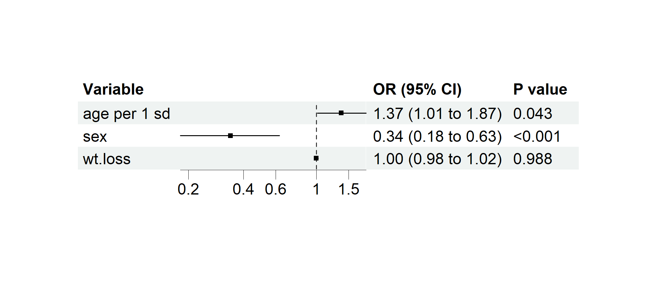 Model2 = c("age per 1 sd", "sex", "wt.loss")