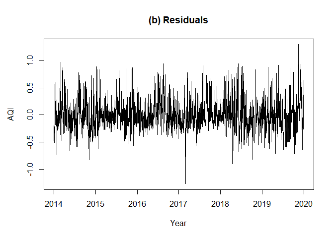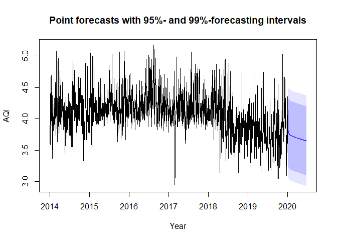 plot(fc, t = t2, xlab = "Year", ylab = "AQI",
