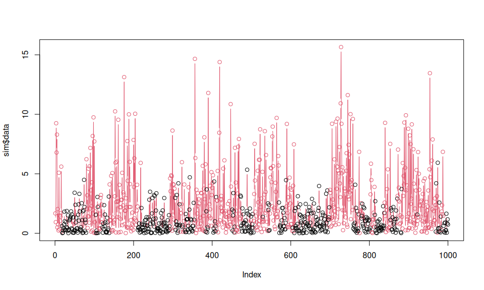 plot(sim$data, col = sim$markov_chain, type = "b")