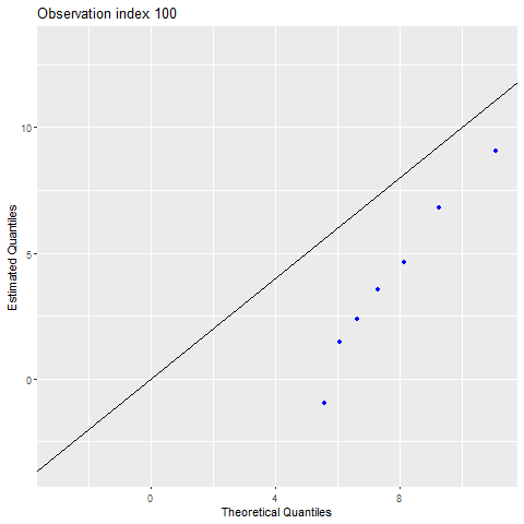 {r eval=FALSE} # Visualize Results for Quantiles (Not run, requires gganimate, gifski and # transformr packages) p <- ggplot(res_q,aes(x=actual_quantile_vals)) + geom_point(aes(y=quantile_est_vals), color="blue") + geom_abline(slope=1,intercept = 0) +xlab("Theoretical Quantiles") + ylab("Estimated Quantiles") + transition_states(idx_vals,transition_length = 2, state_length = 1) + ggtitle('Observation index {closest_state}') anim_save("quant.gif",p)
