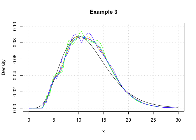 plot(c(0,30),c(0,0.1),type='n',xlab='x',ylab='Density',main='Example 3')