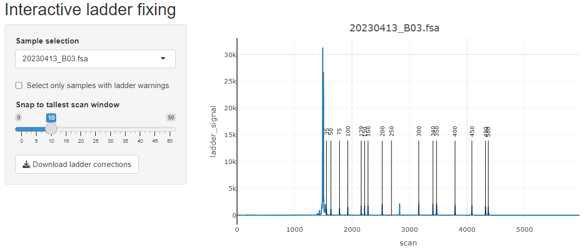Alternatively, this is where you would use data exported from Genemapper if you would rather use the Genemapper bp sizing and peak identification algorithms.