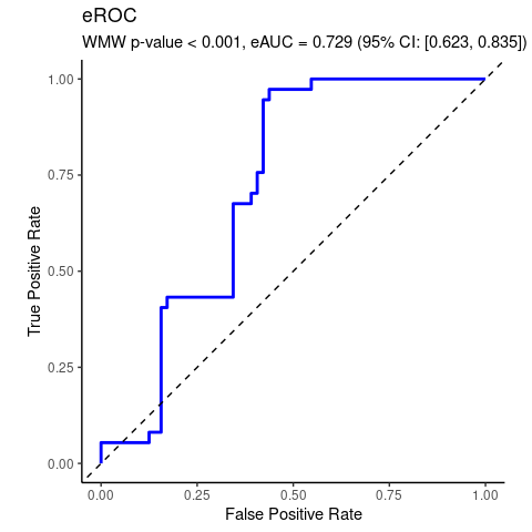 #> U = 1726, eAUC = 0.729, p-value = 0.000007, method = EU